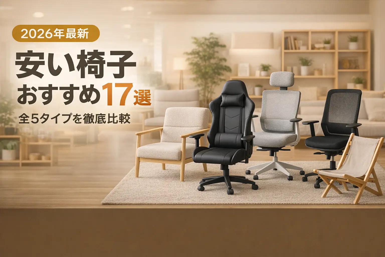 この記事では、安い椅子おすすめ17選をデスクチェア・ダイニング・ゲーミング・パイプ椅子・丸椅子の全5タイプから厳選。購入先比較と失敗しない選び方も解説します。