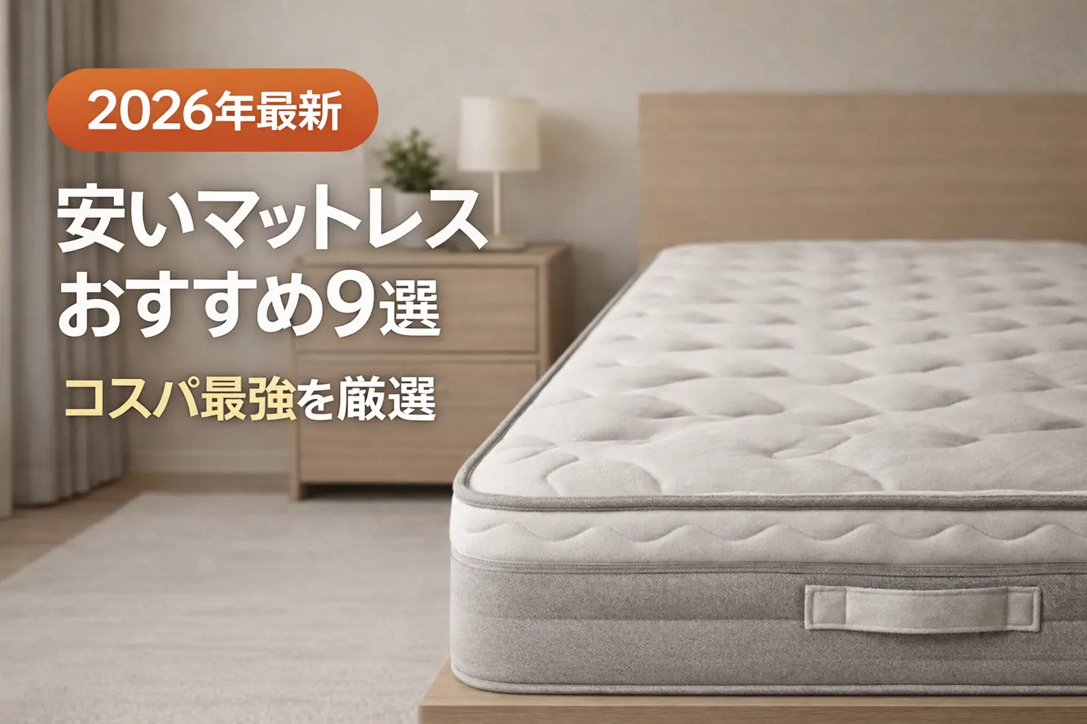 マットレスは安くても良い製品がたくさんあります。ただし「とにかく安ければいい」と選ぶと、すぐにヘタって買い直す羽目になることも。この記事では、予算5万円以下で本当にコスパの良いマットレスを9商品厳選しました。体型に合った硬さの選び方から、予算帯別のおすすめ、安く買える購入先の比較まで、失敗しないマットレス選びに必要な情報をまとめています。