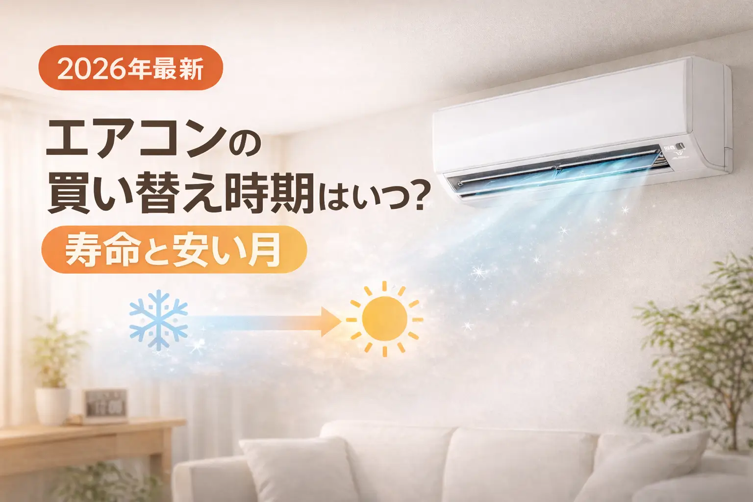 「エアコンの調子が悪いけど、修理と買い替えどっちがいい?」「買い替えるならいつが安い?」そんな疑問にお答えします。エアコンの寿命サインから判断する買い替え時期と、1年のうちで最も安く買えるタイミング、さらに2026年最新の補助金情報まで詳しく解説します。