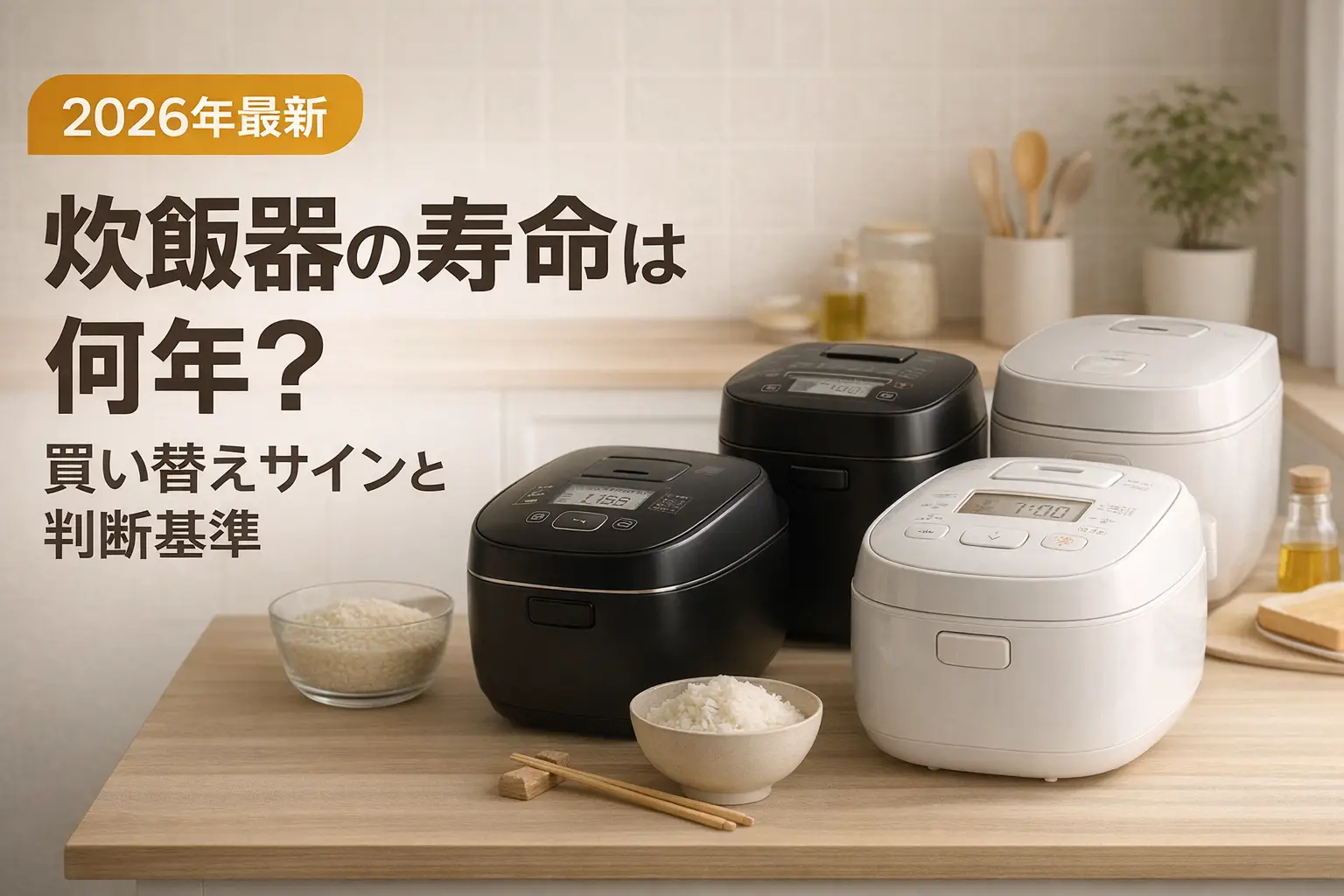 炊飯器の調子が悪くなってきた、もう何年も使っているけど大丈夫?——そんな疑問を持つ方に向けて、炊飯器の寿命を本体・内釜・補修部品の3つの視点から解説します。買い替えサインの見極め方、修理と買い替えの判断基準、内釜だけ交換する方法まで、この記事で判断に必要な情報がすべてわかります。