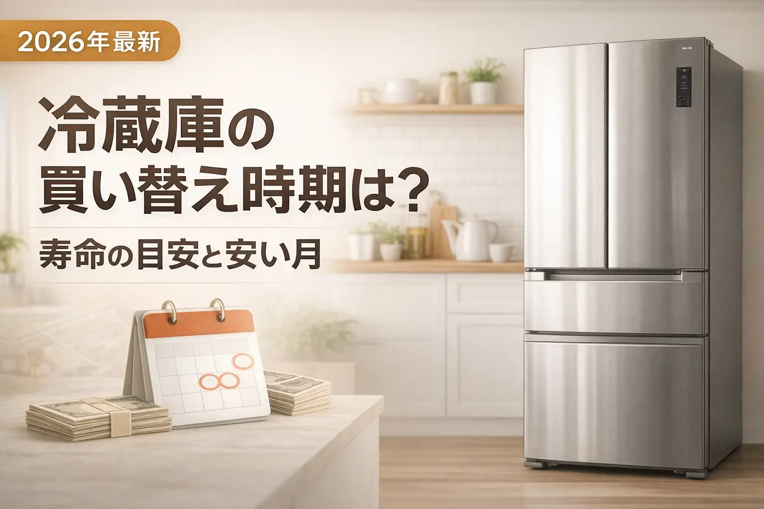 冷蔵庫の買い替えを検討しているけれど、「まだ使えるのにもったいない」「いつ買えば安いの?」と迷っていませんか。この記事では、冷蔵庫の寿命の目安から故障のサイン、安く買えるベストタイミング、買い替え前の準備、古い冷蔵庫の処分方法まで、買い替えに必要な情報をまとめて解説します。