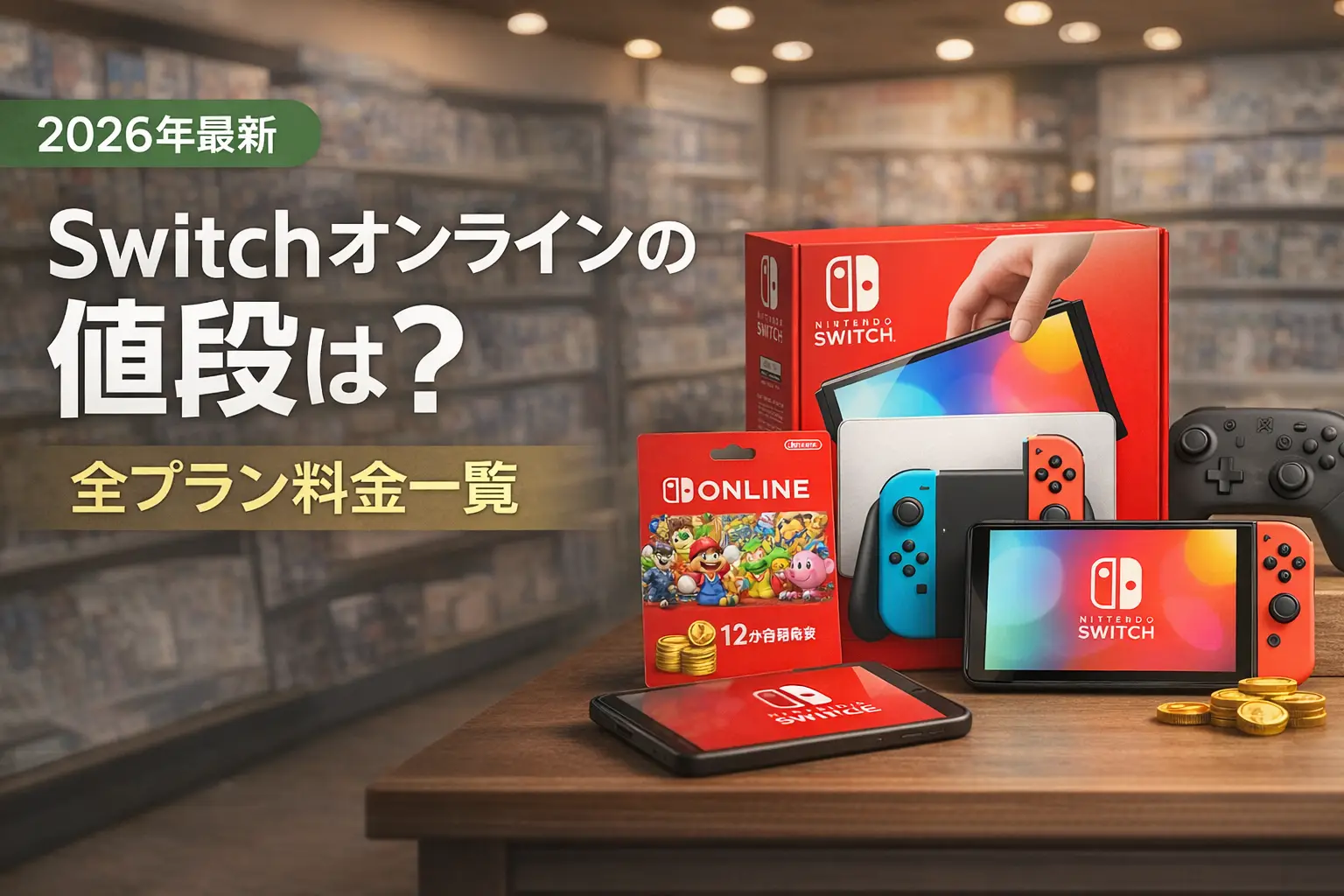Nintendo Switch Online(ニンテンドースイッチオンライン)の値段は、個人プラン12ヶ月で2,400円(税込)です。この記事では全プランの料金一覧、通常プランと追加パックの違い、個人・ファミリープランの選び方、お得な購入方法まで解説します。