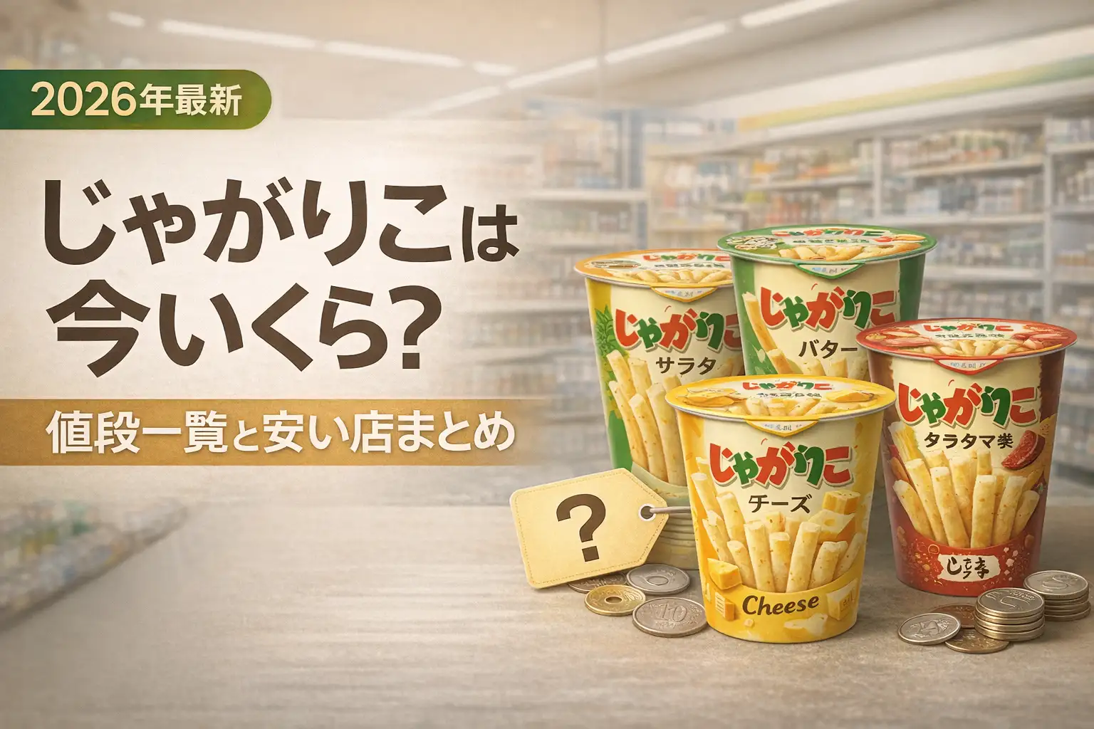 じゃがりこの値段は種類・サイズ・購入する店舗によって大きく異なります。この記事では、2025年6月の値上げ後の最新価格をもとに、全種類・サイズ別の値段一覧と、コンビニ・スーパー・ドラッグストアなど店舗別の価格比較をまとめました。どこで買うと安いのかも結論からお伝えします。