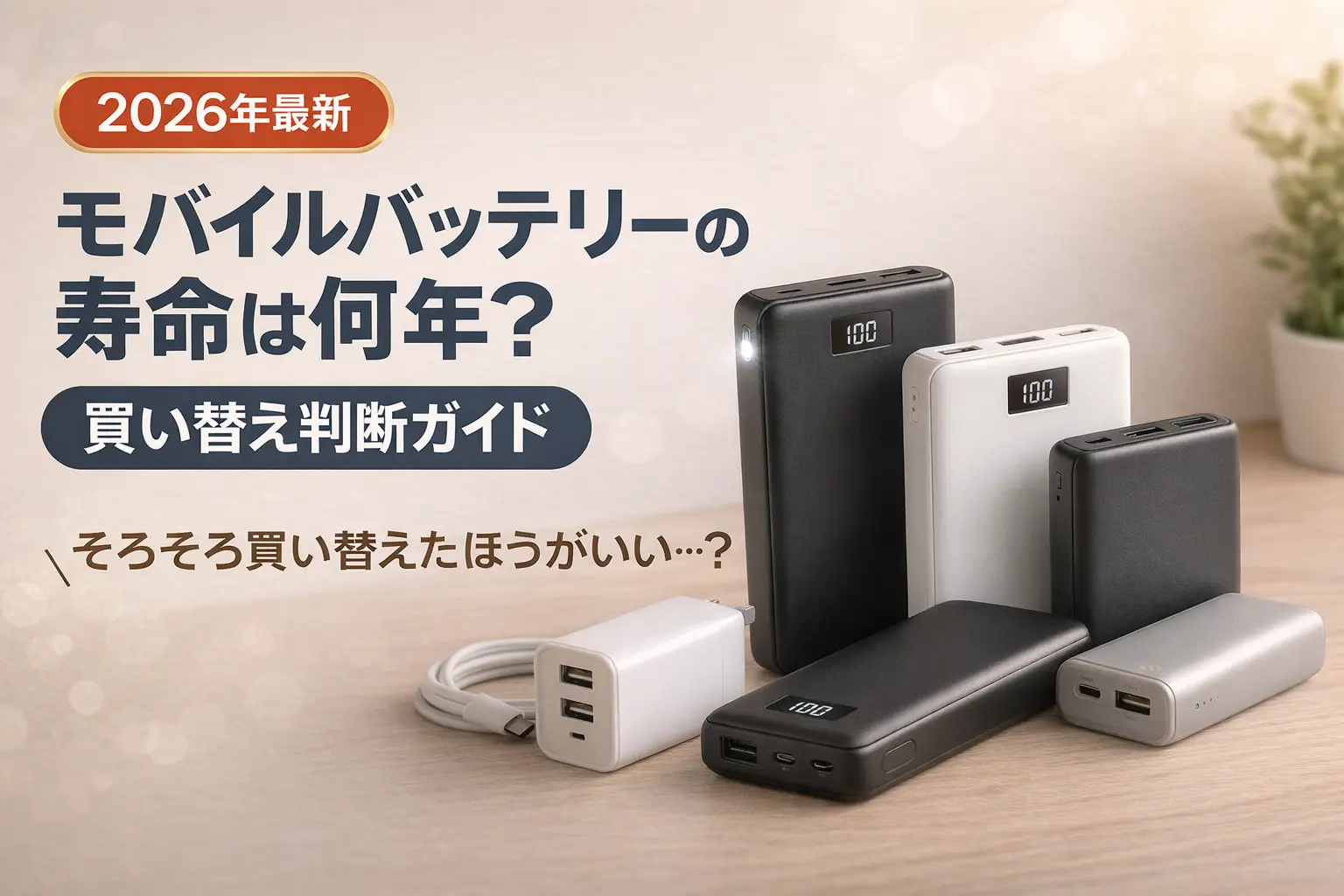 モバイルバッテリーの寿命が気になっていませんか? この記事では、モバイルバッテリーの寿命の目安(年数・充電回数)、劣化のサインと判断基準、長持ちさせるコツ、そしてAnkerなど主要メーカーの公式見解まで、買い替えの判断に必要な情報をまとめて解説します。