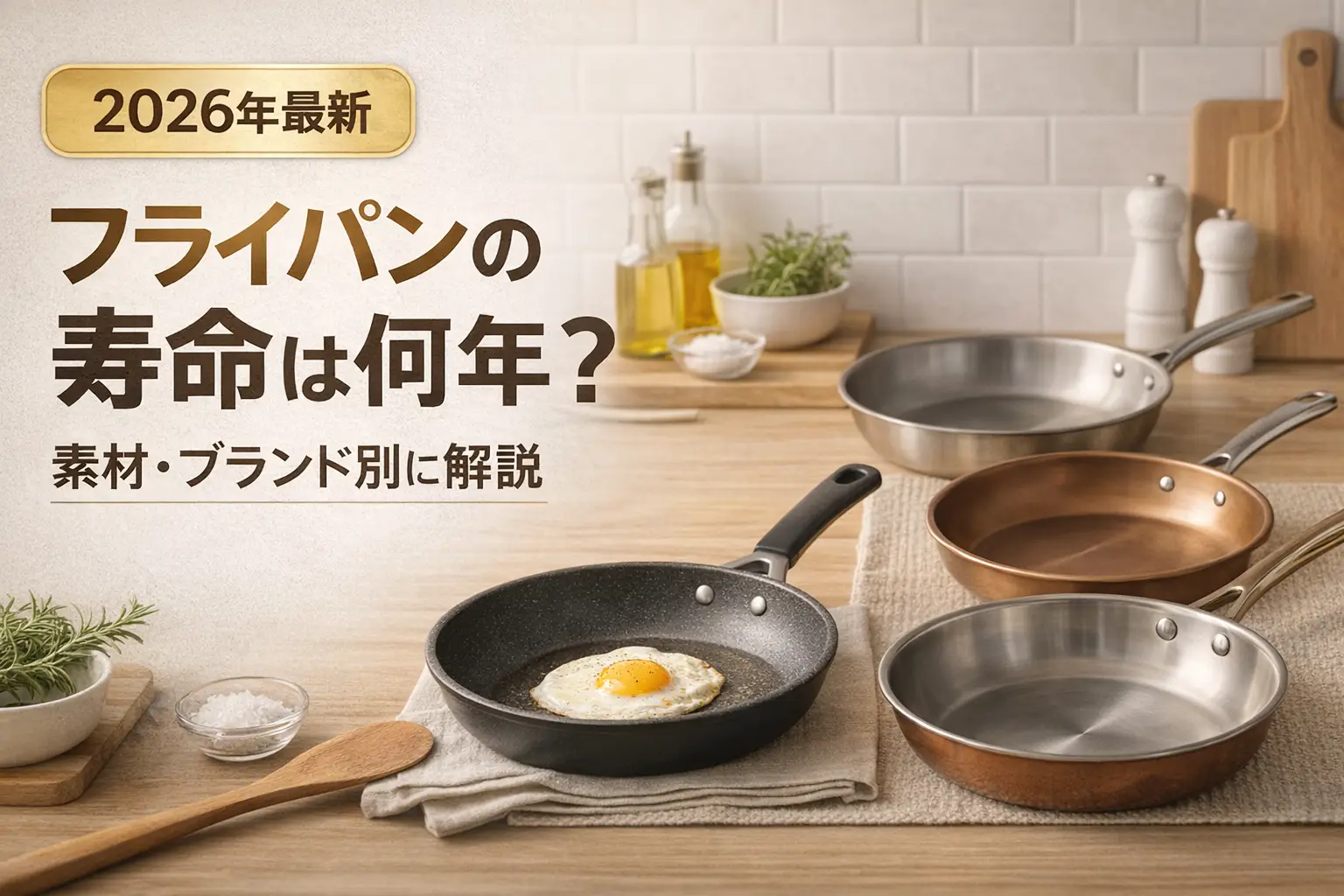フライパンの寿命は、素材やコーティングの種類によって大きく異なります。テフロン加工なら1〜2年、鉄製なら半永久的に使えるなど、その差は歴然。この記事では素材・加工別の寿命年数から、買い替えのサイン、長持ちさせるコツ、さらにティファール・グリーンパン・マイヤーなど人気ブランド別の寿命まで徹底解説します。