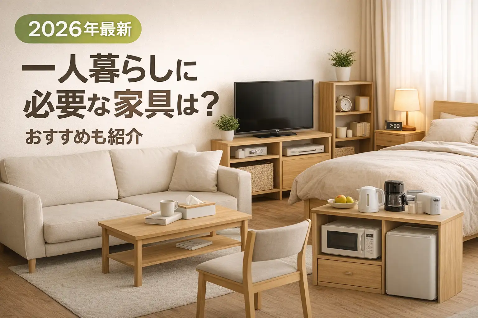 一人暮らしを始めるとき、どんな家具を買えばいいか迷いますよね。限られた予算とスペースの中で「本当に必要な家具」と「後から買い足せば十分な家具」を見極めることが大切です。この記事では、一人暮らしに必要な家具を優先順位付きで紹介し、カテゴリ別のおすすめ商品、間取り別のレイアウト、費用の目安まで解説します。