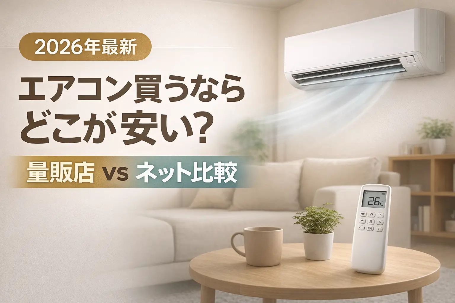 本体価格だけを見ると、店舗運営コストがかからないネット通販が安い傾向にあります。ただし工事費・ポイント還元・保証を含めた「実質総額」で比較することが大切です。2台以上のまとめ買いなら、値引き交渉がしやすい家電量販店が有利になるケースも。さらに、9〜11月の型落ちシーズンや3月・9月の決算セールを狙えば、どこで買ってもさらに安くなります。