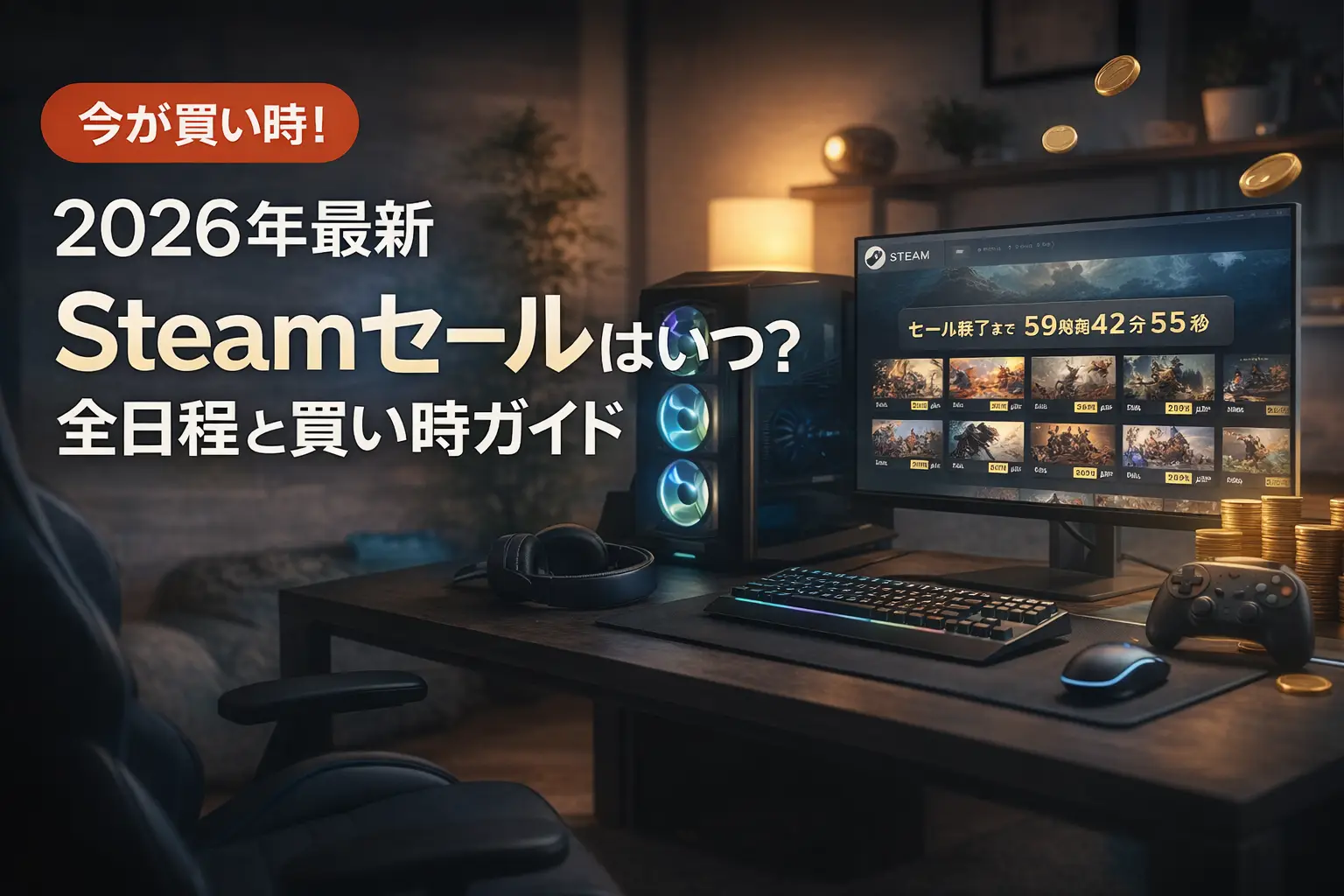 Steamセールは年間26回以上開催され、大型の季節セールからジャンル特化のフェスまで種類はさまざま。この記事では2026年の全セールスケジュールと、各セールの特徴、そしてセールで最安値を逃さないための具体的なテクニックをまとめています。