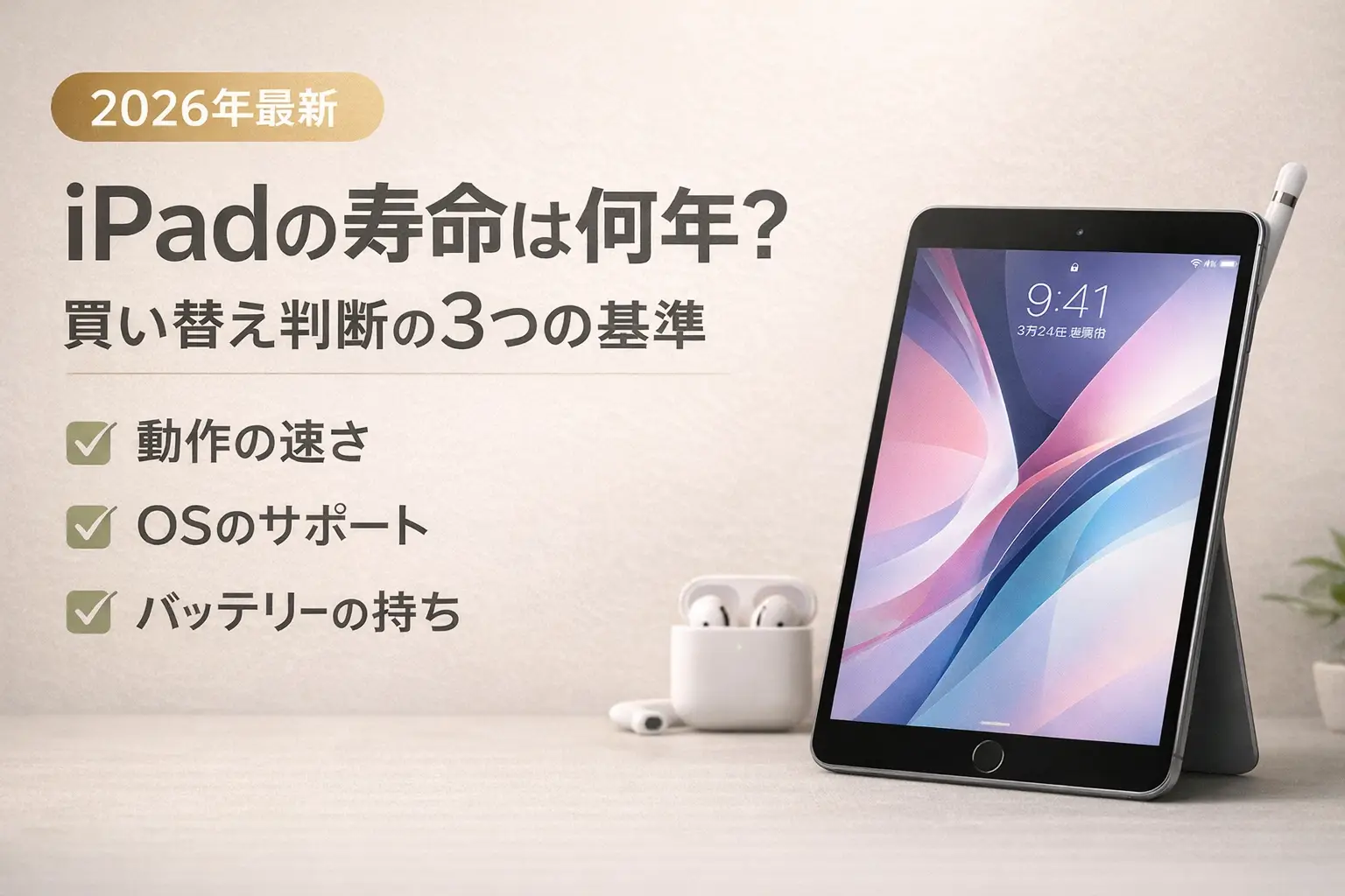 iPadの寿命が気になっていませんか?この記事では、Apple公式の想定耐用年数からバッテリーの劣化、iPadOSのサポート状況まで、iPadの寿命を決める要素を網羅的に解説します。自分のiPadがあとどれくらい使えるのか、買い替えるべきかの判断基準がわかります。