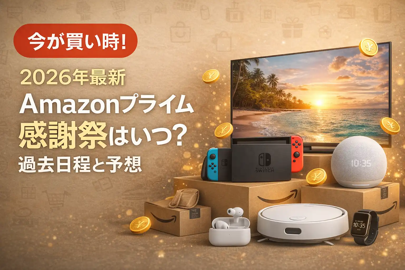 Amazonプライム感謝祭は毎年10月に開催されるプライム会員限定のビッグセールです。この記事では、2026年の開催時期の予想と過去3年分の開催実績、プライムデーとの違い、セールに向けた準備までまとめています。