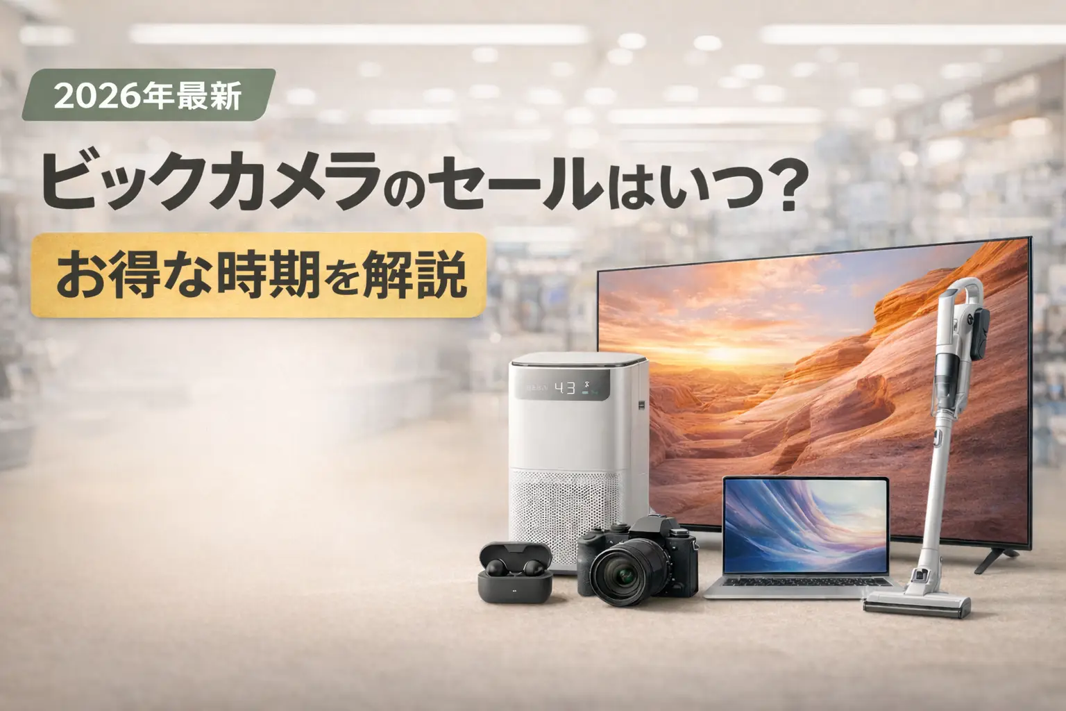 ビックカメラは8月期決算のため、総決算セール(7〜8月)が年間最大の値引きイベントです。次いで中間決算セール(1〜2月)も狙い目。このほかブラックフライデー(11月)や歳末セール(12月)、初売り(1月)など年間を通じてお得なタイミングがあります。この記事では各セールの時期・特徴・お得に買うコツを、価格データとともに解説します。