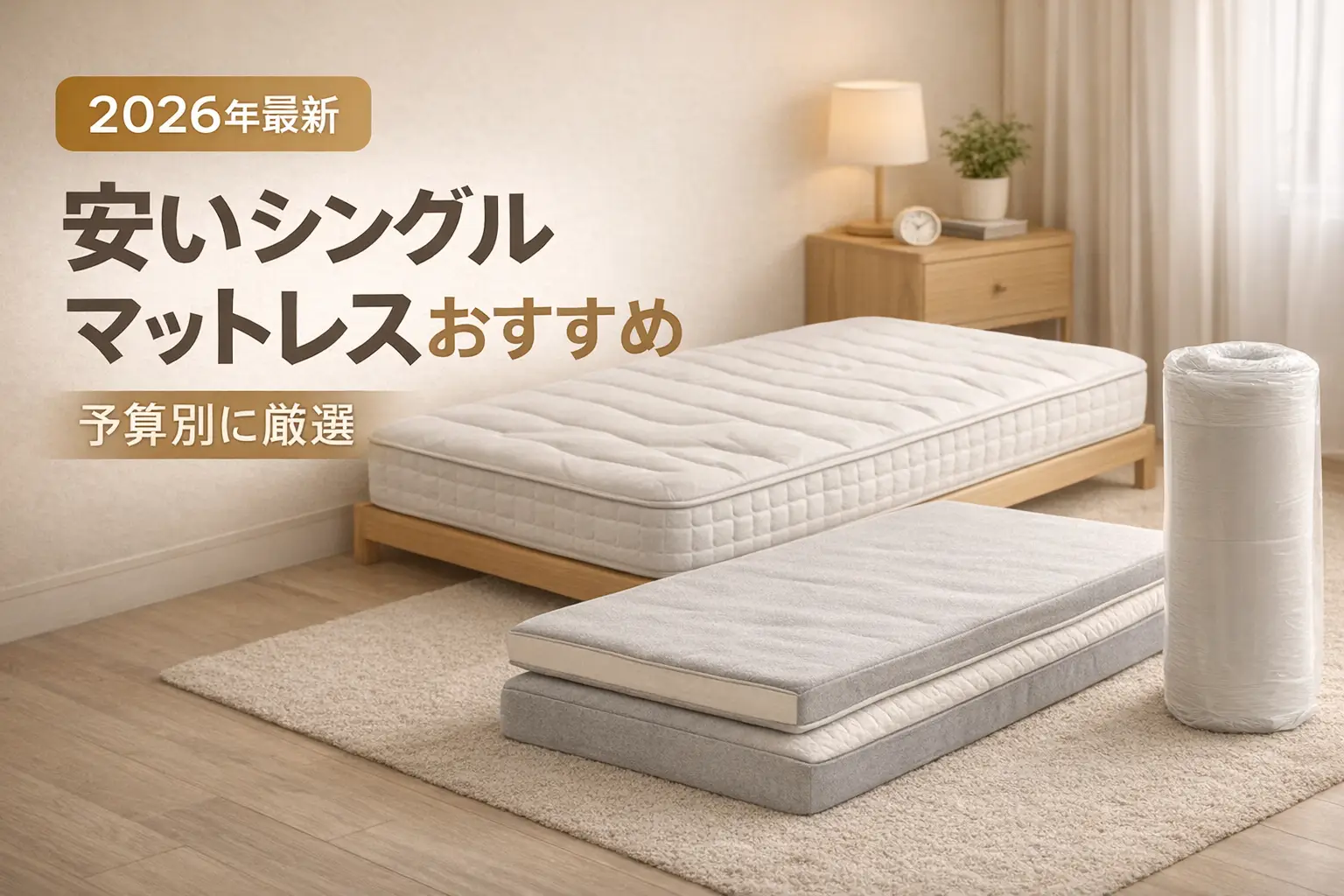 安いシングルマットレスが欲しいけれど、品質が心配で選べない——そんな方のために、予算別のおすすめ商品と失敗しない選び方をまとめました。1万円以下から5万円以下まで、コスパの良い商品を厳選しています。