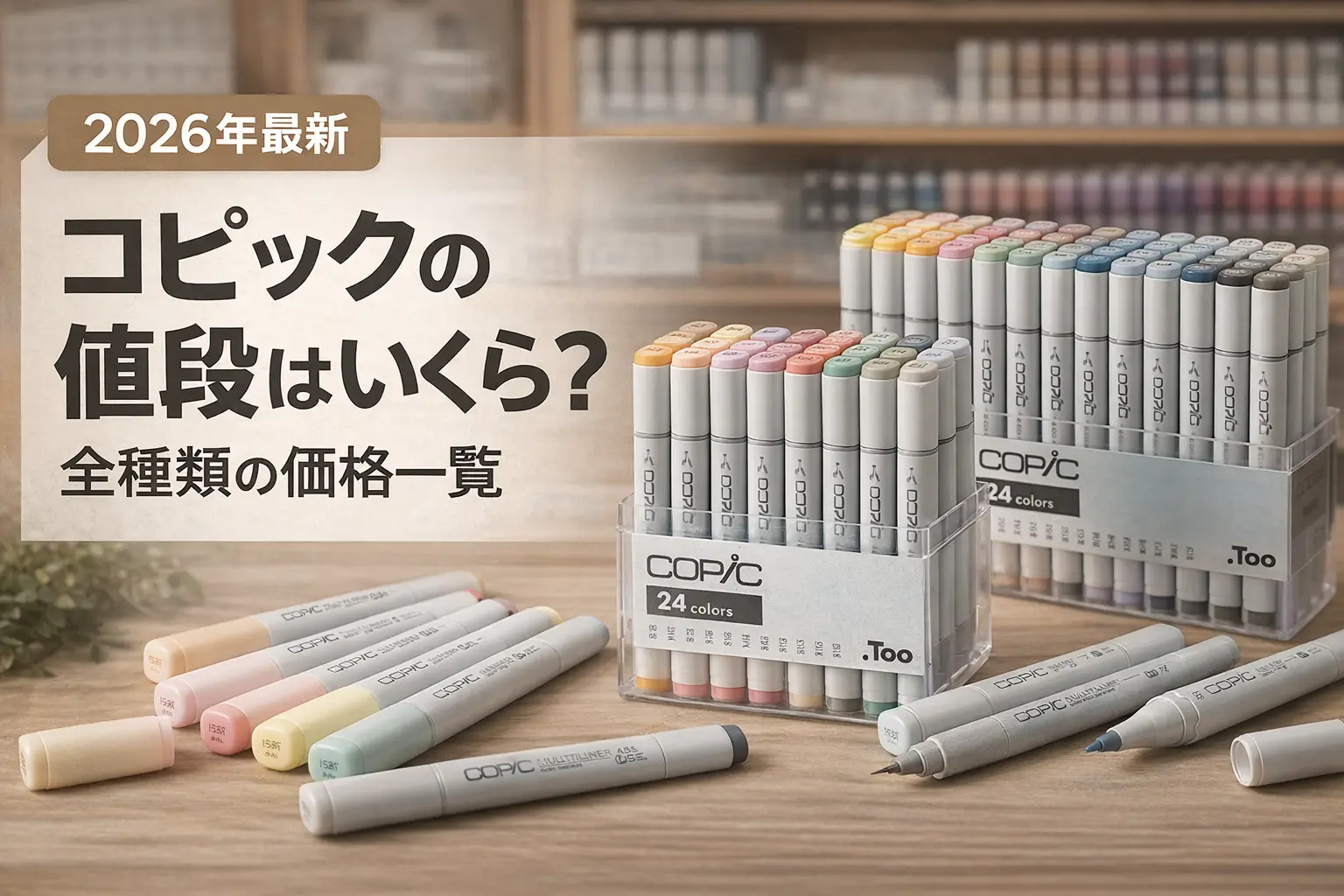 コピックの値段は、種類によって1本330〜638円。この記事では、コピック全3種類の値段一覧から、セット価格の比較、安く買う方法まで、購入前に知っておきたい価格情報をまとめました。2026年2月の値上げ後の最新価格に対応しています。