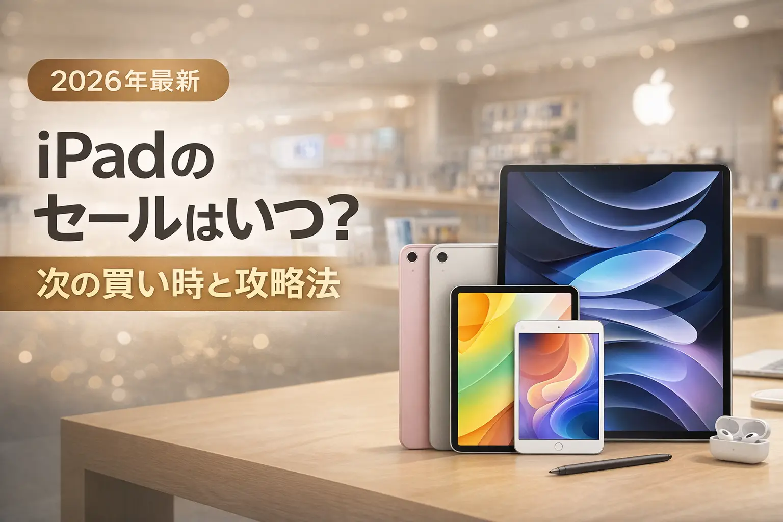- 初売りセール(1月2日〜5日) — iPad Pro/Air: 15,000円分、iPad/mini: 8,000円分のApple Gift Card還元(2026年実績)