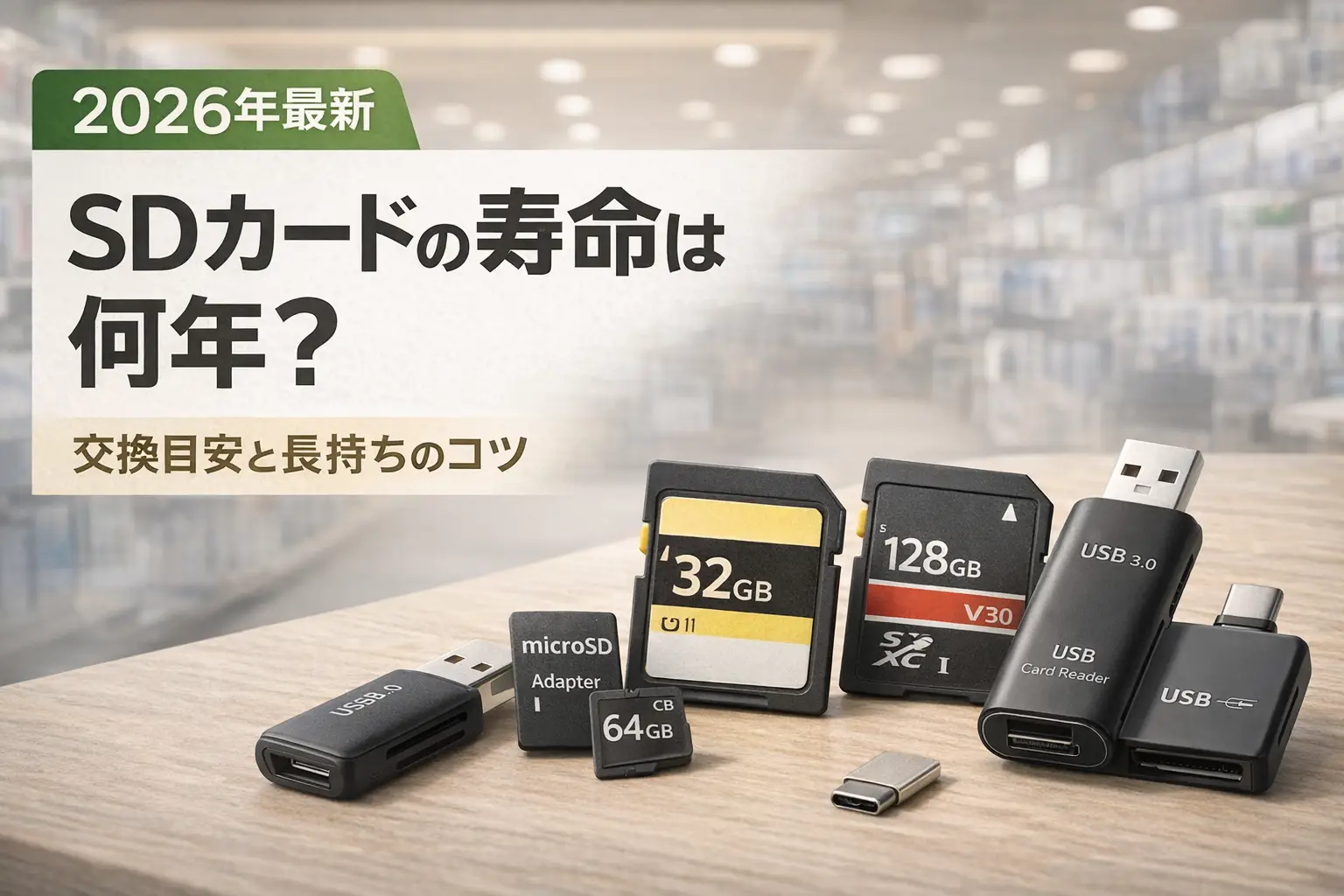 ただし実際の寿命は、書き込みの頻度・データ量・使用環境によって大きく左右されます。毎日大量に書き込む使い方と、たまに写真を保存する使い方では、同じSDカードでも寿命が数年単位で変わります。