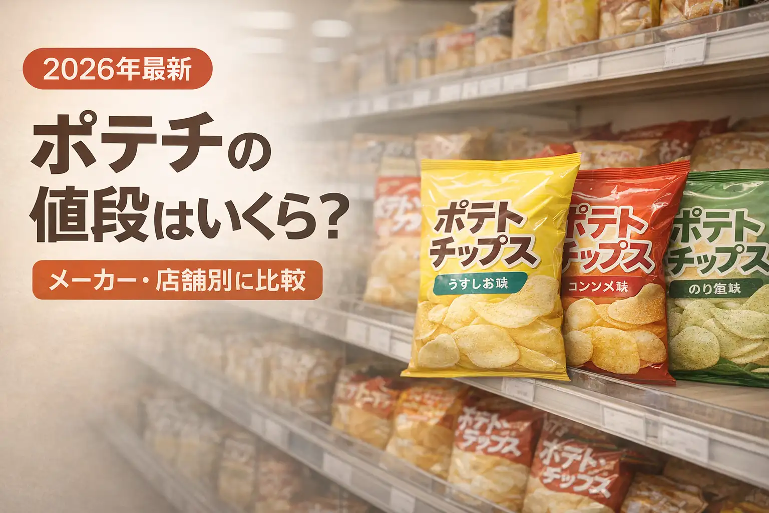 2026年3月時点の主要ポテトチップスの値段をメーカー別にまとめました。いずれも店頭想定価格(税込)です。