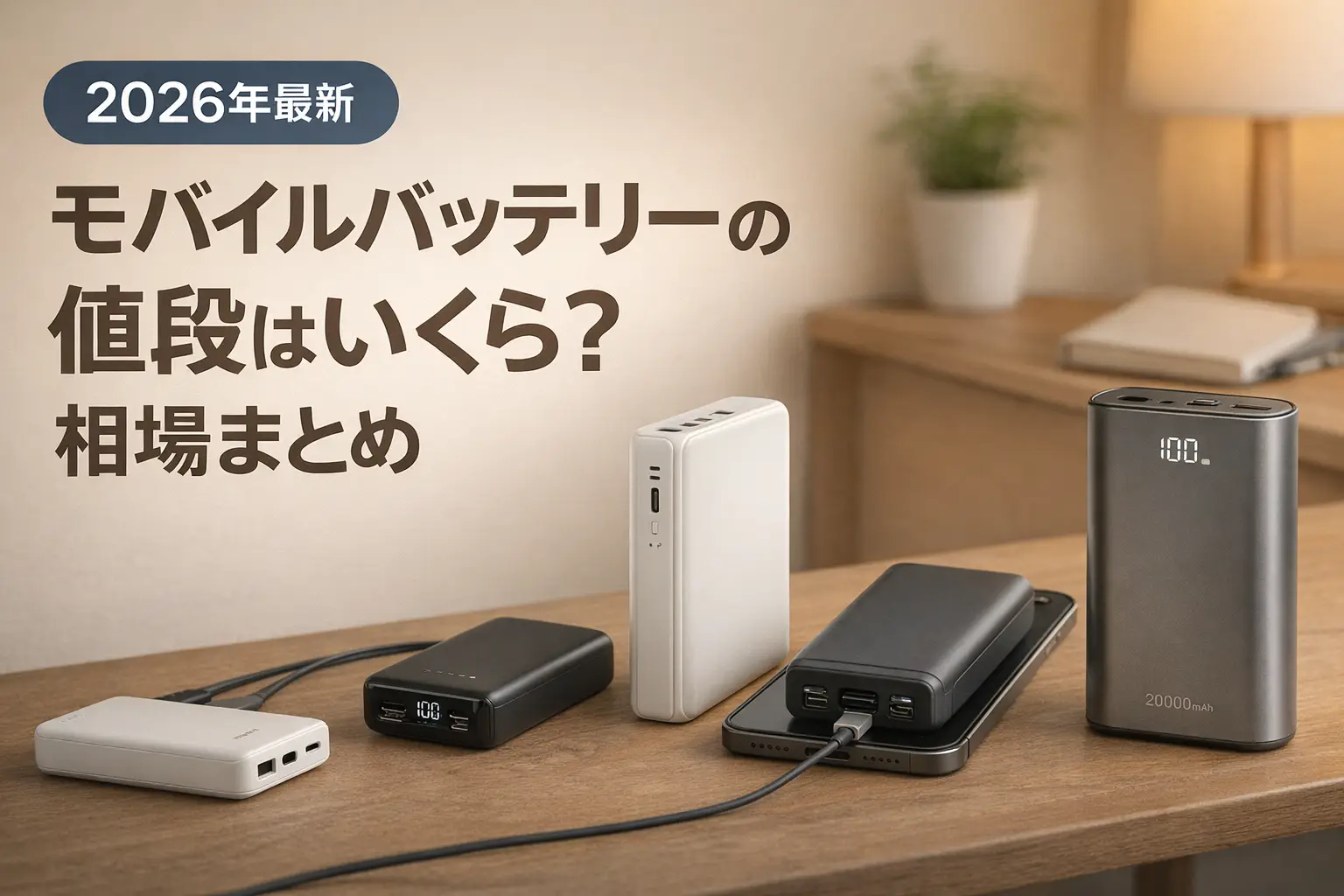 モバイルバッテリーの値段は、容量や購入場所によって大きく変わります。この記事では、コンビニ・通販・100均など購入場所別の値段相場と、損をしない選び方をまとめました。