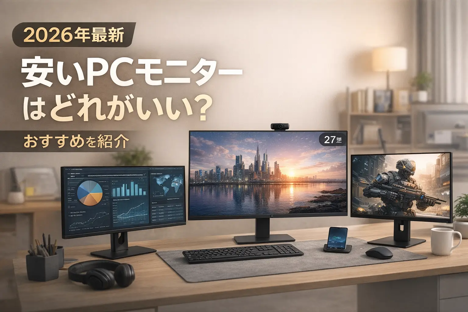 PCモニターは1〜2万円台の安いモデルでも十分実用的です。この記事では、安いPCモニターの選び方と用途別のおすすめ商品を紹介します。テレワーク・動画鑑賞・普段使いなど、あなたの用途に合った1台が見つかります。