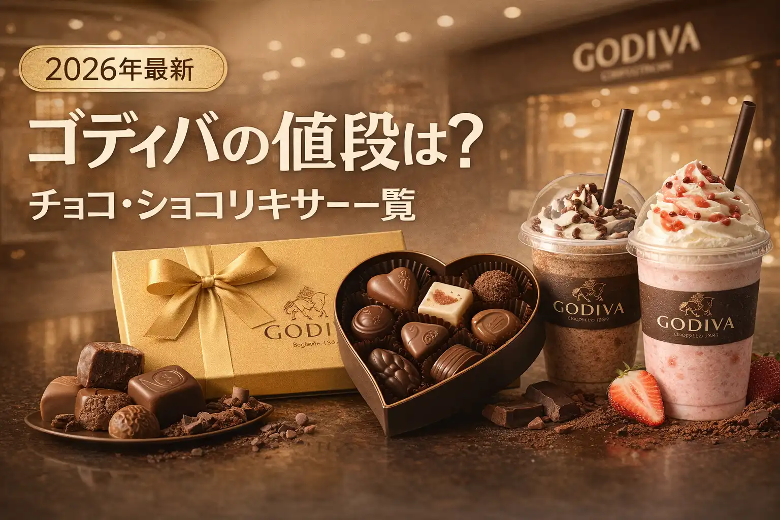 ゴディバ(GODIVA)のチョコレートはいくらするのか、贈り物を買う前に価格帯を確認したい方向けに、チョコレート・ショコリキサー・ケーキ・焼き菓子まで、全カテゴリの値段をまとめました。コレクション別の一粒あたり単価比較や、お得に買う方法も解説します。