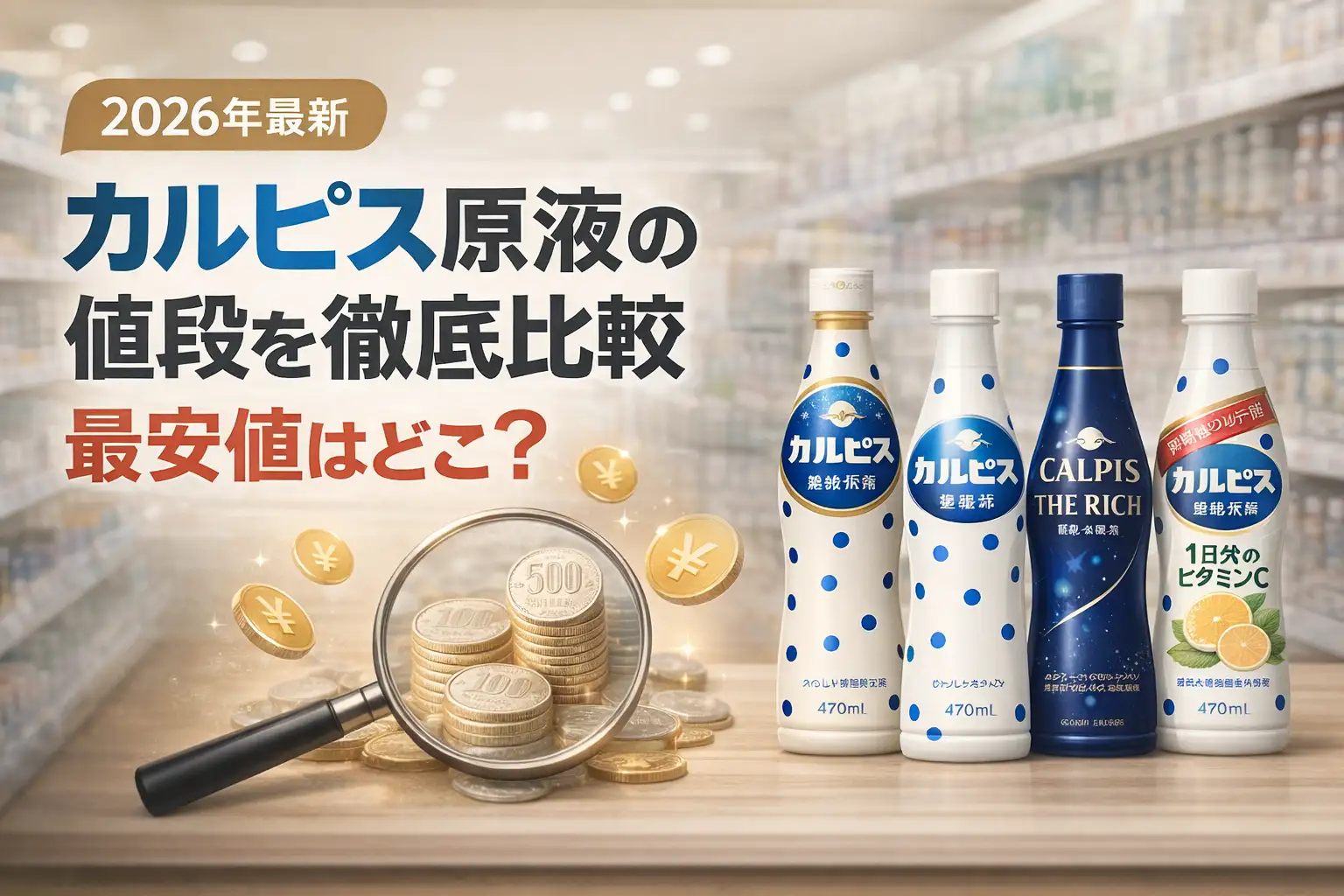 カルピス原液の値段はどこで買うかによって大きく変わります。この記事では、スーパー・ドン・キホーテ・業務スーパー・コンビニ・ネット通販など各販売チャネルでの実売価格を比較し、どこで買うのが最安値かをまとめました。コスパ計算もあわせて解説します。