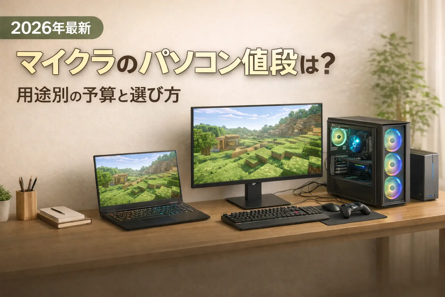 「マイクラをパソコンでやりたいけど、いったいいくらのPCが必要なの?」と悩んでいませんか?実はパソコンの値段は遊び方によって大きく異なります。設定を低くしてバニラ(MODなし)で遊ぶなら6万円台でも始められますし、影MODで美しいグラフィックを楽しみたいなら10〜15万円は見ておきたいところです。この記事では、マイクラ用PCの値段相場と、予算帯ごとのおすすめPCを分かりやすく解説します。
