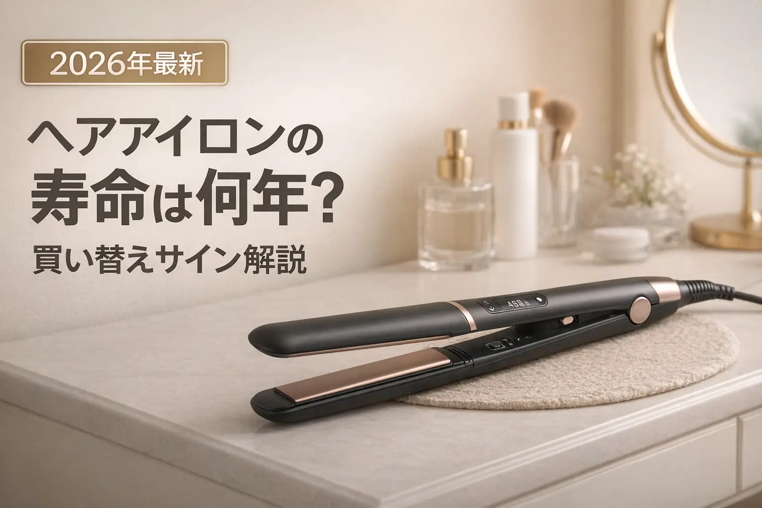 毎日使用する場合の目安は3〜5年です。ただし、プレートの素材(チタンやシルクプレートは長持ちしやすい)や使い方・メンテナンスによって大きく変わります。年数より、プレートのコーティング剥がれや温度の不安定さなどのサインを見逃さないことが大切です。