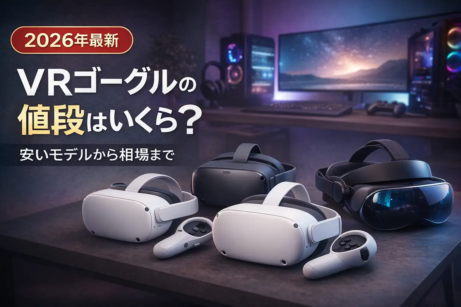 VRゴーグルを買いたいけど、値段の相場がわからない。安いものはいくら?本格的なものはどのくらいかかるの?そんな疑問にお答えします。VRゴーグルは数百円〜10万円以上と幅広く、タイプごとに値段が大きく変わります。「とりあえず安く試したい」ならスマホ装着型を数百円で、「ちゃんとVRゲームを楽しみたい」ならMeta Quest 3Sを5万円台で購入できます。この記事では、タイプ別の値段相場と、予算・用途別の選び方をわかりやすく解説します。