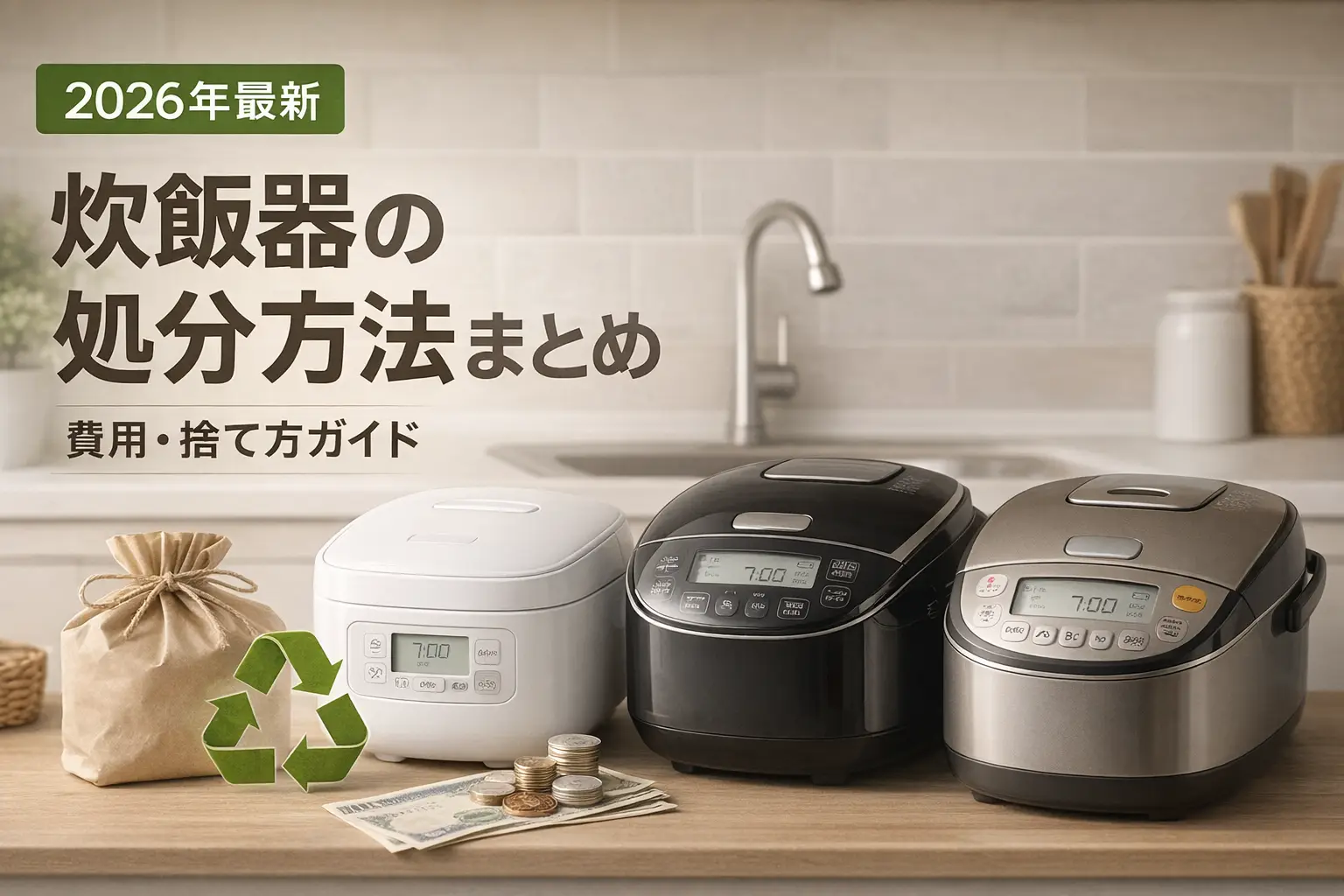 はい、あります。主な方法は3つです。①小型(30cm未満)の場合は不燃ごみとして無料で処分できます。②自治体や家電量販店に設置された小型家電回収ボックスへの投入も無料です(ボックスに入るサイズが条件)。③新しい炊飯器を購入する際に、家電量販店が無料で古い炊飯器を引き取るキャンペーンを実施している場合もあります。