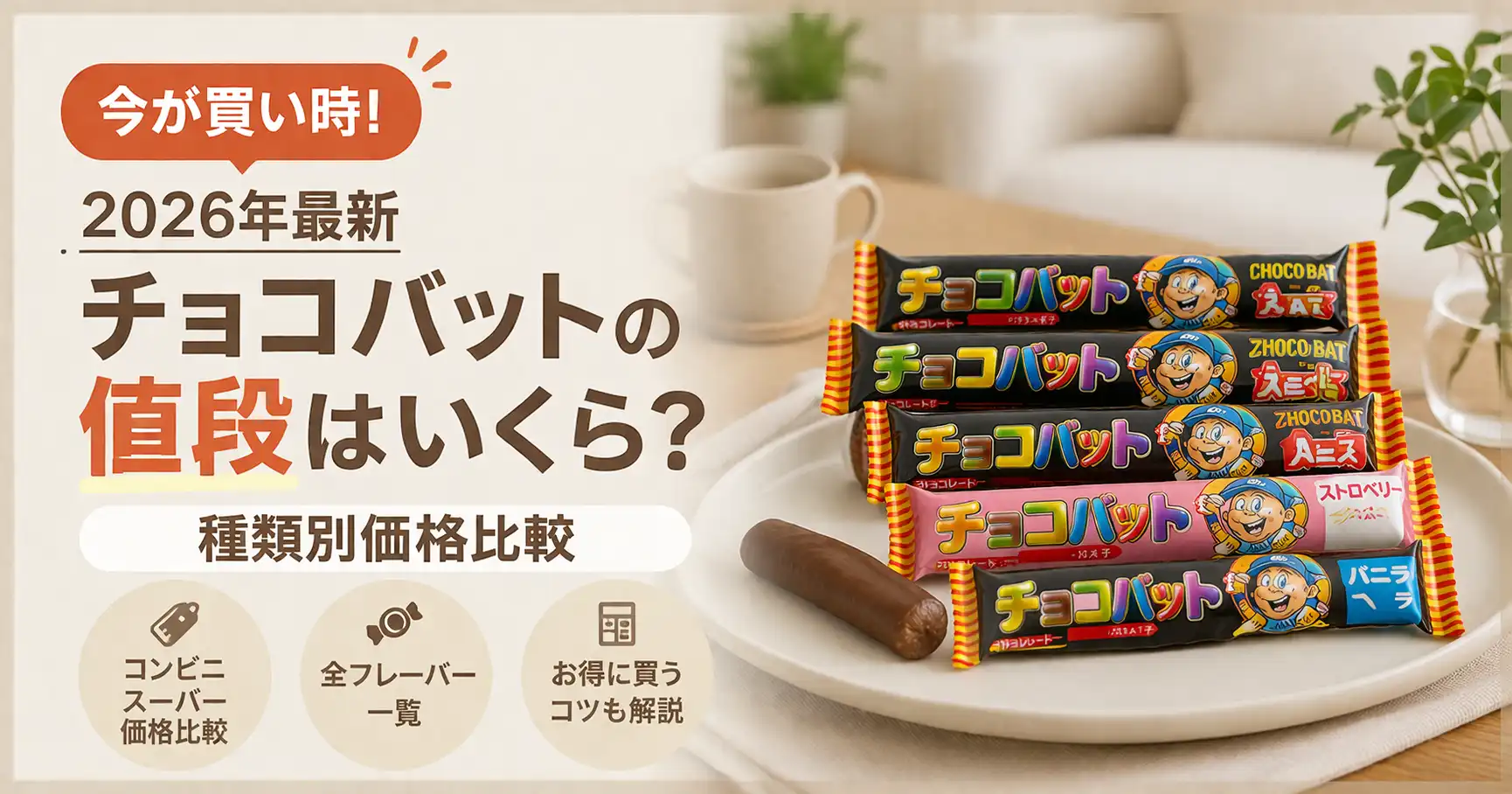 「チョコバットって今いくらするの?」と気になっている方は多いのではないでしょうか。1964年から愛され続ける駄菓子のホームラン王・チョコバットは、種類やどこで買うかによって価格がかなり変わります。この記事では、チョコバットの現在の値段を種類別・販売店別に徹底的にまとめました。通販でお得に買いたい方向けの価格推移データもご紹介しますね。