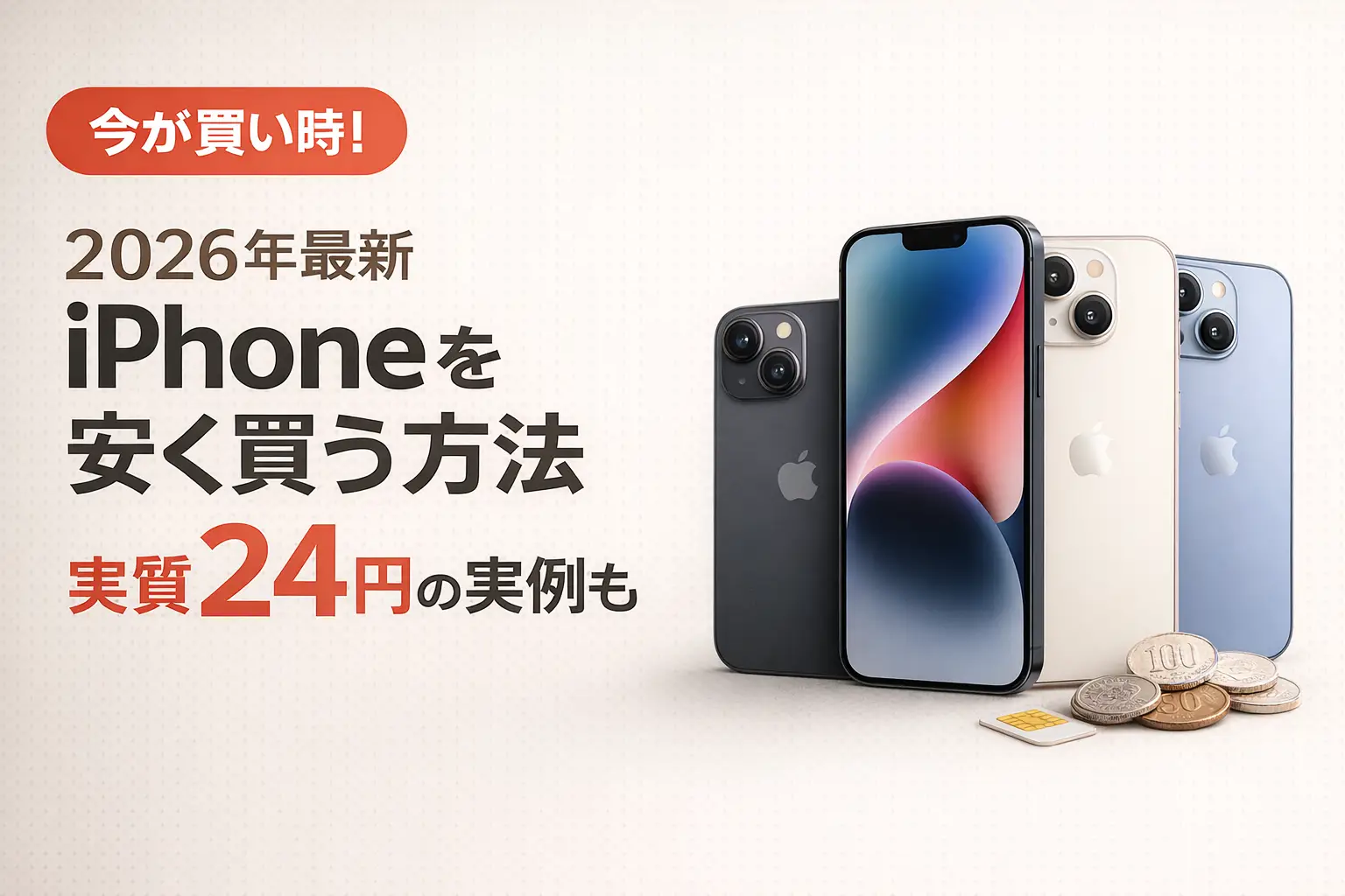 2026年4月現在、完全な一括0円や実質0円の提供は行われていません。MNP+端末購入プログラムを組み合わせた場合、実質24〜47円程度が最安水準です(2年後の端末返却が条件)。