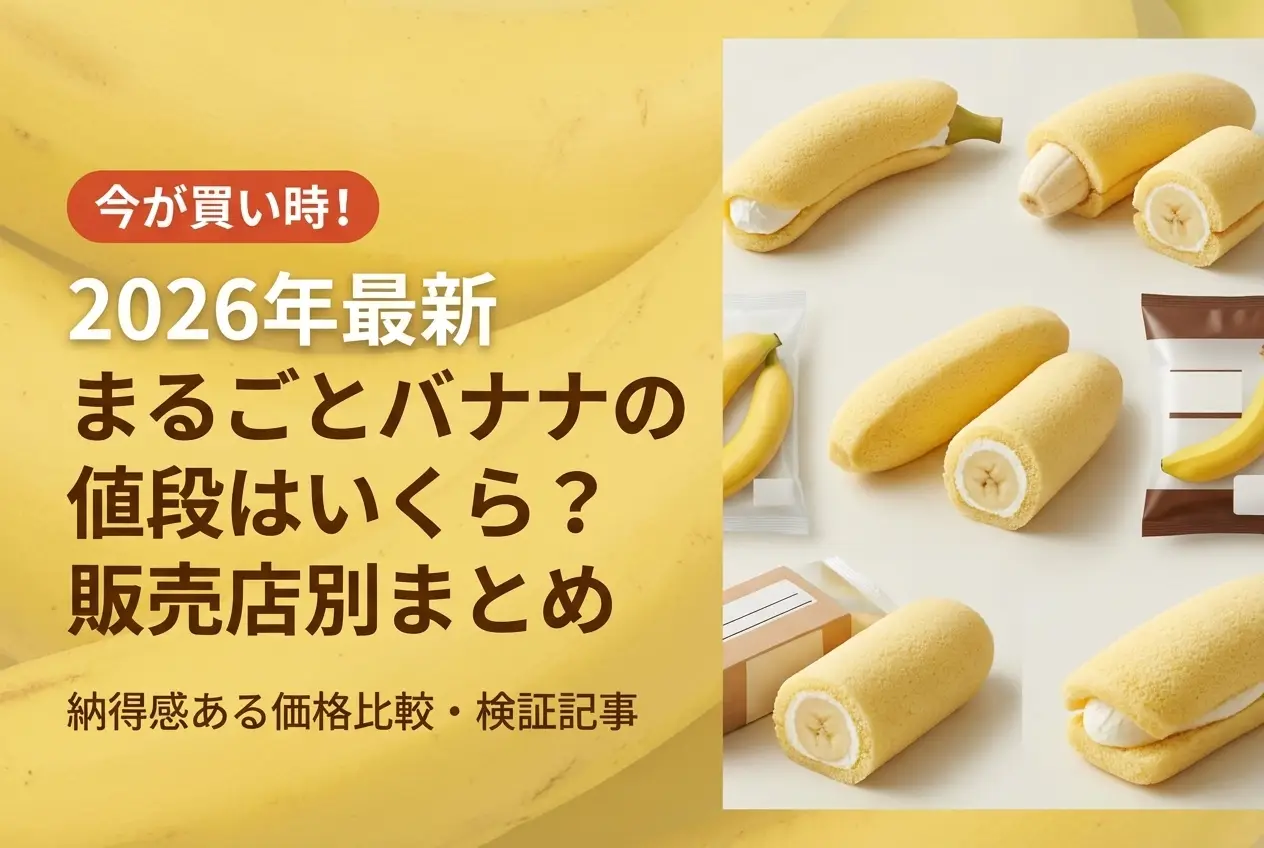 「まるごとバナナっていくらするんだろう?」と気になっている方も多いのではないでしょうか。山崎製パンの定番スイーツ「まるごとバナナ」は、通常サイズ・ミニ・チョコバナナなど種類によって値段が異なります。この記事では、2026年4月現在の種類別・販売店別の価格相場をわかりやすくまとめました。