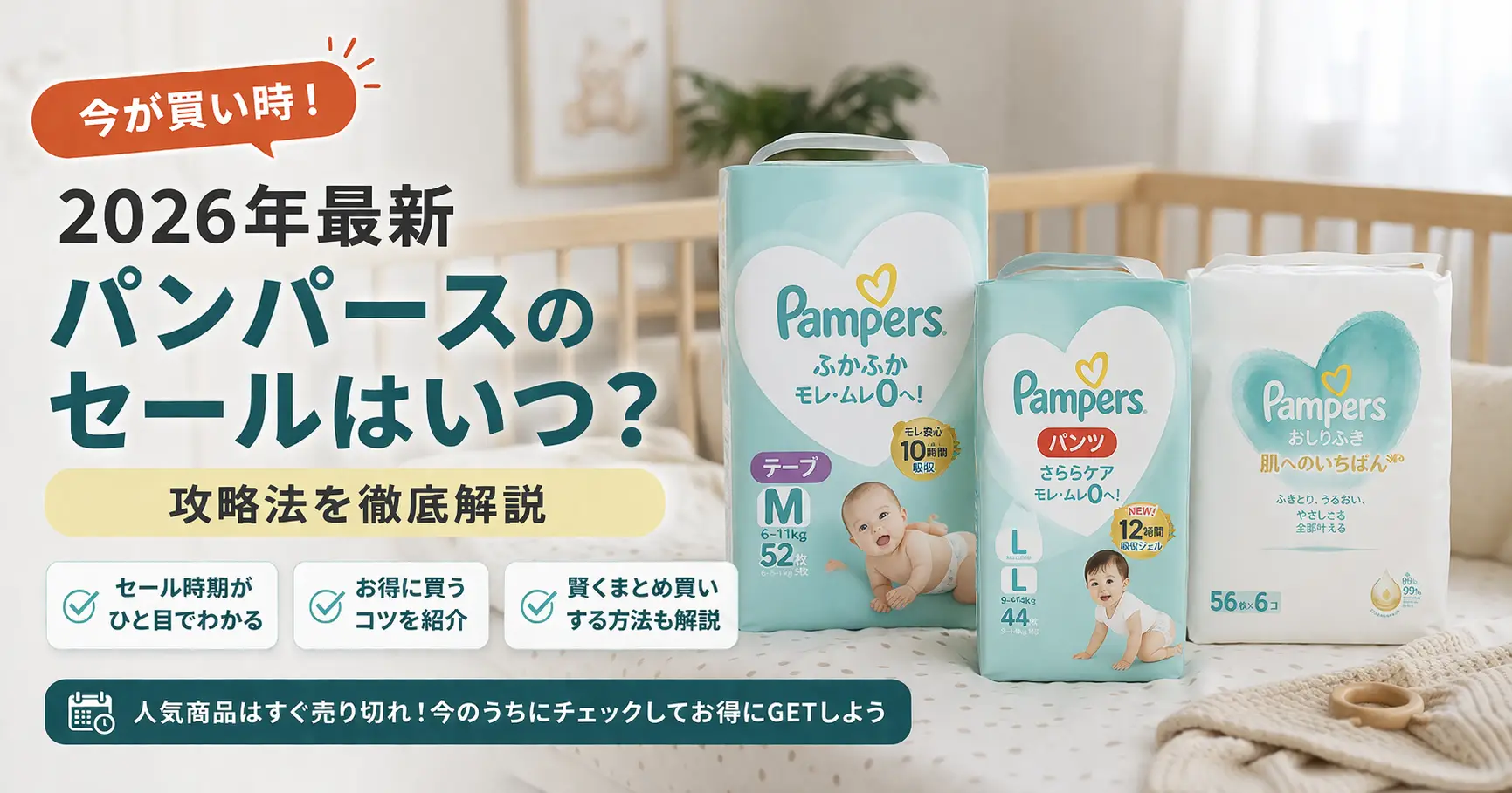 「パンパースってセールになりにくい…」と感じていませんか?実は、プライシーの価格データで調べると、パンパースは直近6ヶ月で値下がり0回・クーポン0回というデータが出ています。つまり、セールのタイミングを見逃すと定価で買い続けることになってしまうのです。この記事では、パンパースが安くなる年間セールカレンダーと、Amazon・楽天それぞれの攻略法を詳しくご紹介します。