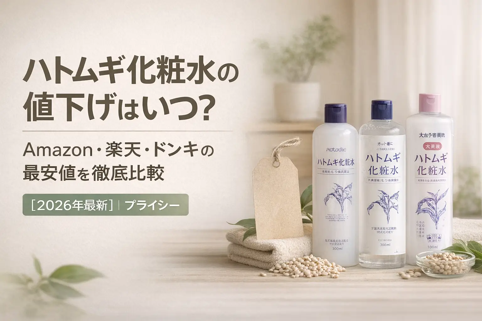 プチプラの代名詞「ハトムギ化粧水」。もともと安いのに、さらに値下げされるタイミングがあるのをご存じですか?この記事では、プライシー編集部がAmazon・楽天・ドラッグストア・ドン・キホーテの価格を横断で追いかけ、いつ・どこで買えば一番安いのかをまとめました。「同じ商品なのに、タイミングを変えるだけで数百円違った」という体験は、毎日使うアイテムだからこそ大きいですよね。