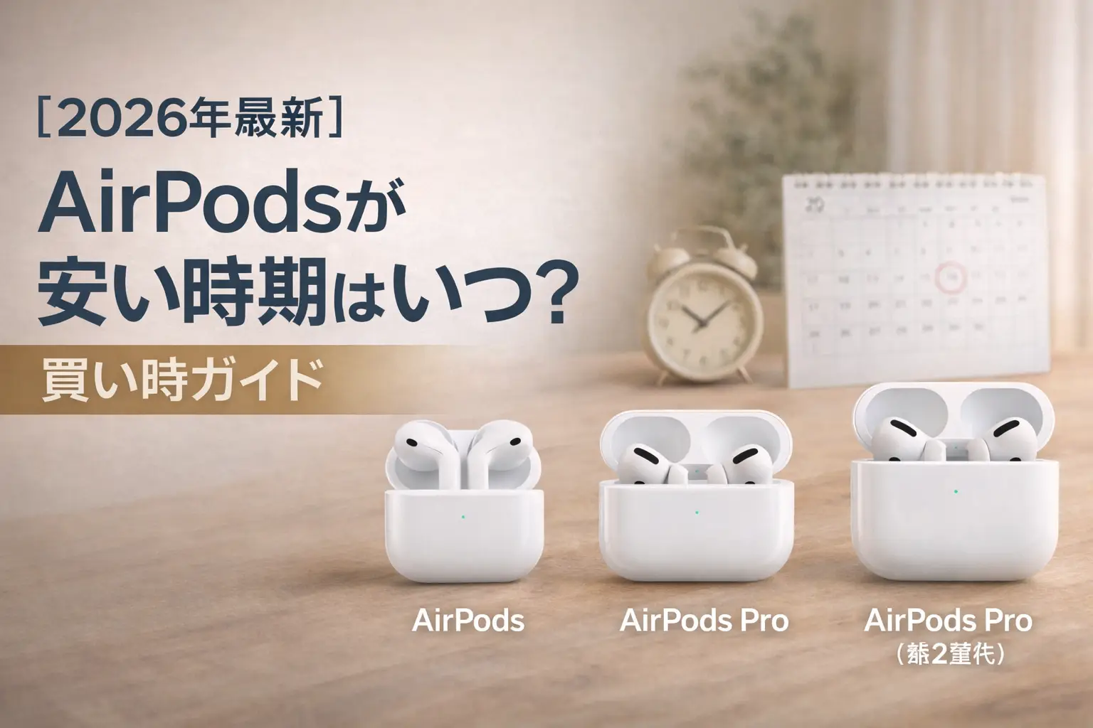 AirPodsを少しでも安く買いたいけれど、「いつ買えばいいの?」と迷っていませんか。実はAirPodsが安くなるタイミングは年に何度もあり、知っているだけで数千円〜1万円近くお得に手に入ります。この記事では、2026年のセールカレンダーから具体的な割引実績、購入場所の比較まで、AirPodsを最安値で買うための情報をまとめました。