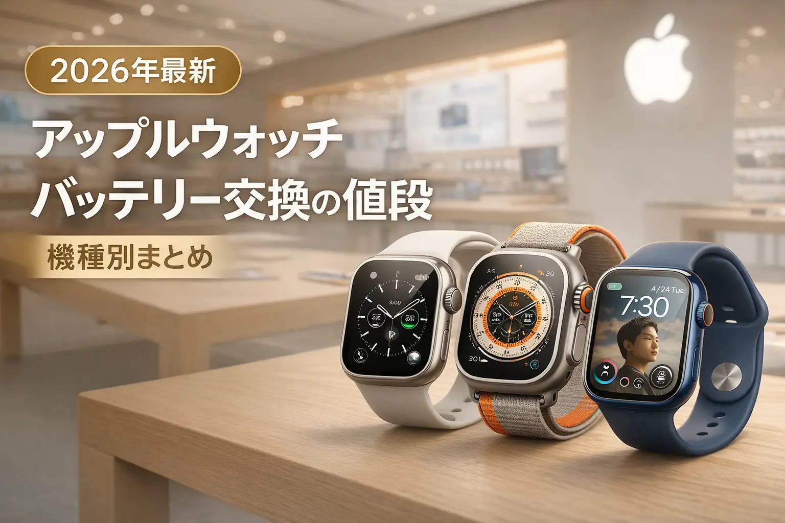 正規修理(AppleCare+なし): Series 3は約12,800円、Series 4以降・Ultra・Ultraシリーズは約15,800円(税込)が目安です。AppleCare+加入中: バッテリー容量が80%未満に低下した場合は無償で交換してもらえます。非正規修理店: 店舗によりますが8,800円〜13,800円程度と正規より安い傾向があります(ただし純正部品ではない場合も)。
