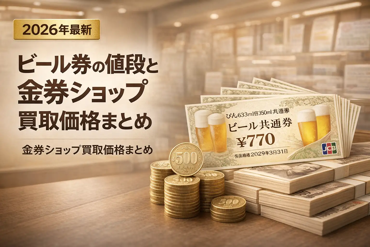 ビール券を金券ショップで買いたい、または手持ちのビール券を売りたいと思ったとき、「いくらで取引されているのか」が気になりますよね。この記事では、金券ショップでのビール券の販売価格・買取価格を一覧でまとめ、価格の仕組みや注意点までわかりやすく解説します。