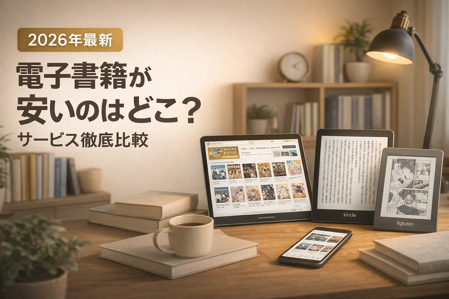 「電子書籍ってどこで買えば一番安いの?」と迷っていませんか?電子書籍サービスは国内だけで20社以上あり、クーポンや読み放題プランの条件がバラバラで、どこが本当にお得か分かりにくいですよね。この記事では、初回クーポンの割引率・読み放題の月額コスト・ジャンルの強さを軸に、安い電子書籍サービスを徹底比較します。「まとめ買い派」「読み放題派」「雑誌だけ読みたい人」など、タイプ別の結論もまとめましたので、ぜひ参考にしてみてください。