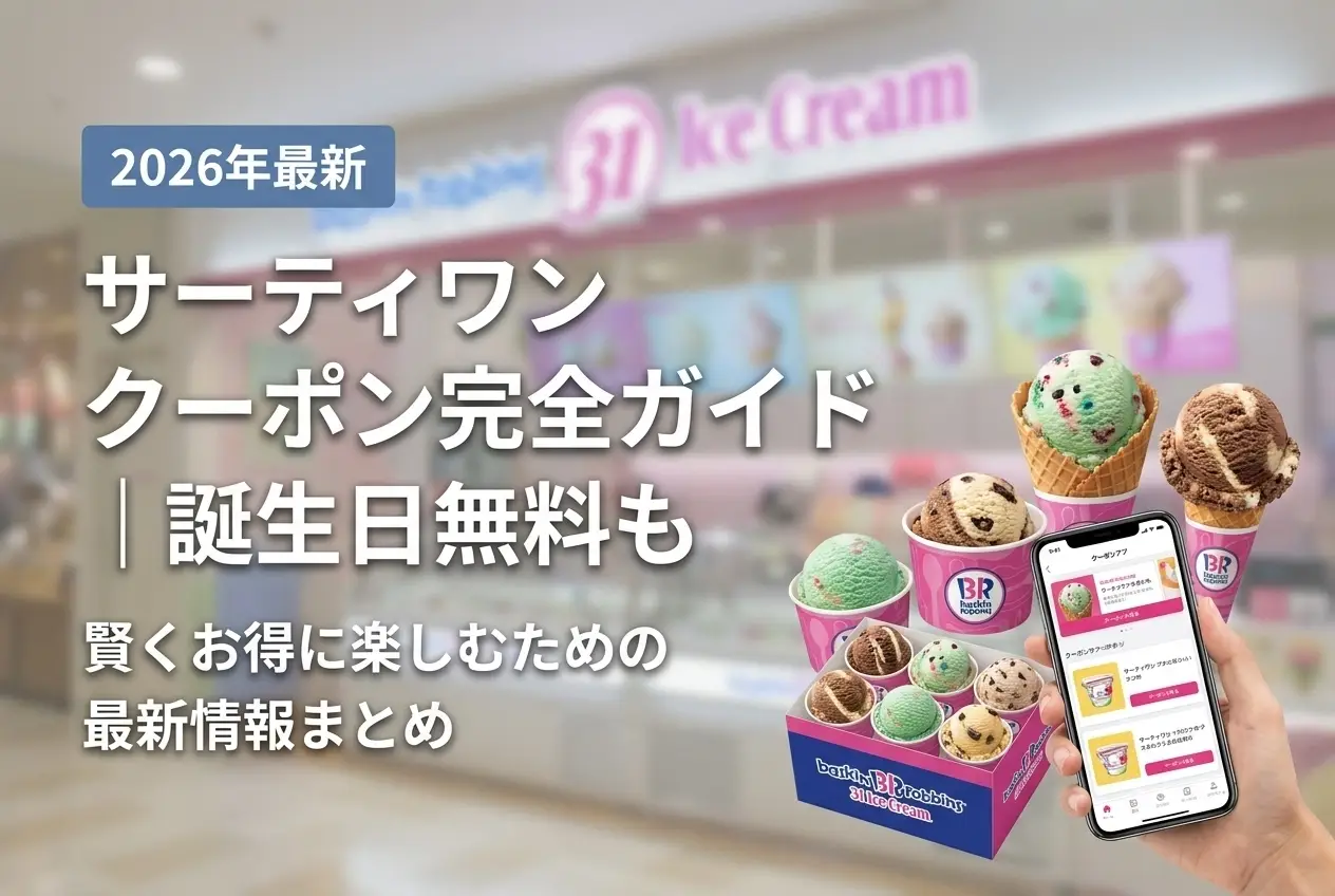 サーティワン(31 ICE CREAM)でお得にアイスを楽しみたい方へ。公式アプリの誕生日無料クーポンから、LINE・X(旧Twitter)のキャンペーンまで、2026年4月現在に使えるクーポンをすべてまとめました。どれから始めるべきか迷ったときも、この記事を読めばすぐにわかります。