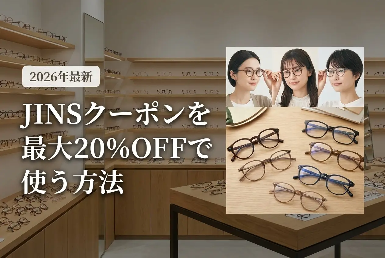 「JINSのクーポン、何種類あってどれが一番お得?」「半額クーポンって本当にある?」——そんな疑問をお持ちの方のために、2026年4月現在に使えるJINSクーポンの種類・取得方法・使い方をまるごとまとめました。誕生日クーポンの確実な受け取り方から、誕生月以外の節約術まで、状況別に最適な方法をご紹介します。