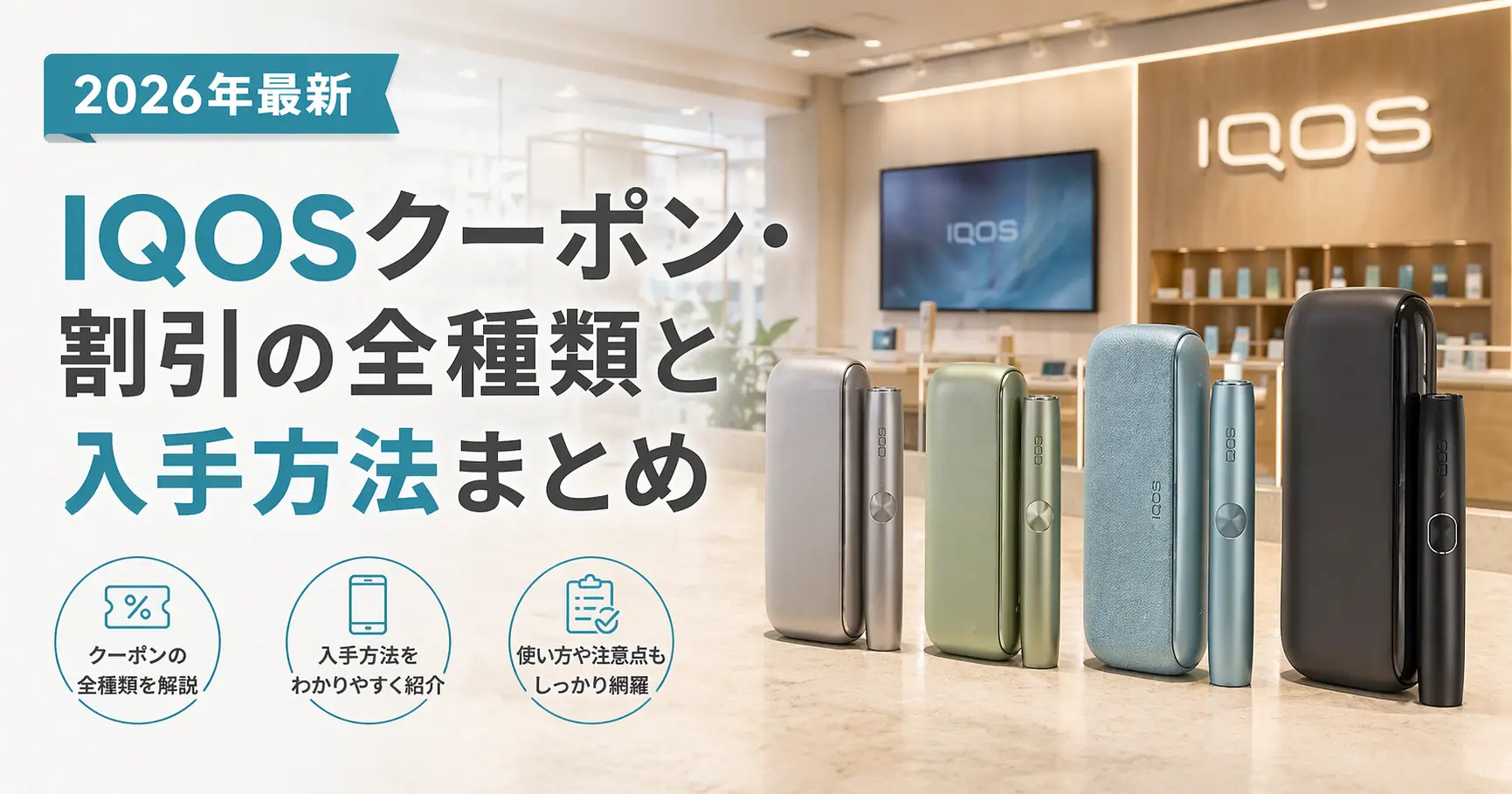 「IQOSをもう少し安く買えないかな」と思ったことはありませんか?実はアイコスには複数のクーポン・割引プログラムが用意されており、うまく活用すれば最大30%OFFでデバイスを購入することができます。この記事では、2026年4月時点で使えるIQOSクーポンの種類・入手方法・使い方を徹底解説します。