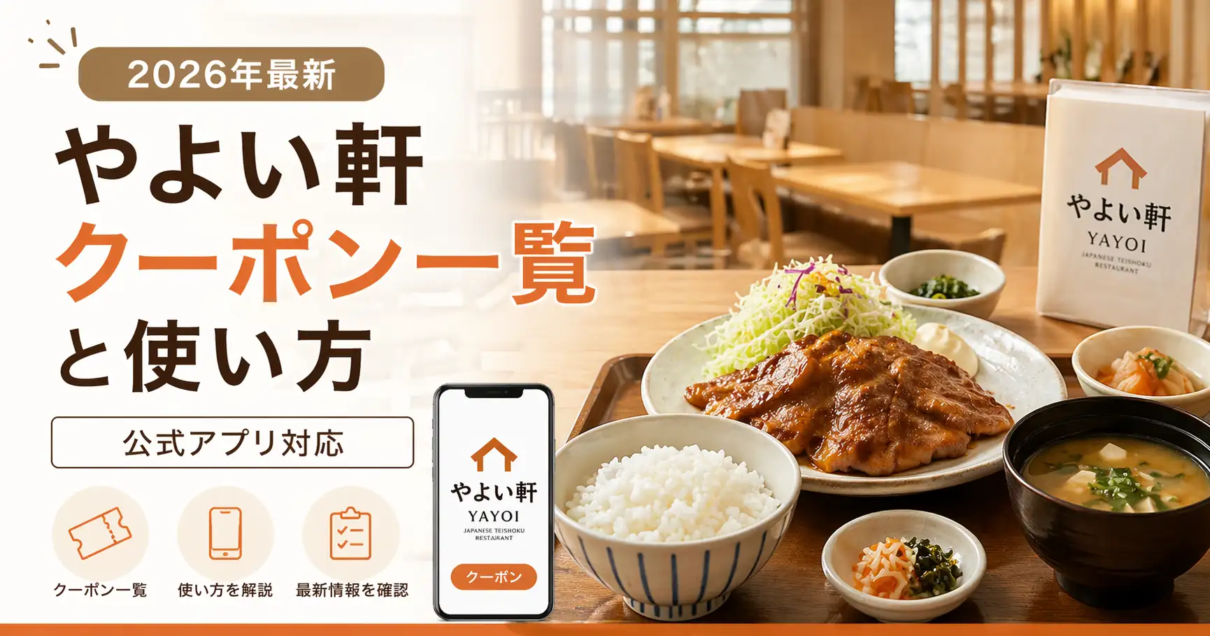2026年4月時点でやよい軒が提供しているクーポンをまとめました。基本的に公式アプリから取得するものが中心です。アプリをまだダウンロードしていない方は、こちらの手順を参考にしてください。